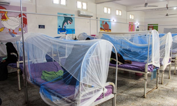 ليس كوفيد 19 المشكلة في مستشفى عتق. يعاني رامي صالح (6 أعوام) تحت ناموسية للتغلب على حمى الضنك، وتبرز عينا أمه فاطمة من تحت النقاب، وتشكو النقصَ المتزايد في المواد الغذائية (ارتفعت الأسعار بنسبة تصل إلى 15% منذ 2018 وفقًا للأمم المتحدة، بينما يفقد الريال اليمني ثلثي قيمته)، والنظام الصحي الذي يتوجب دفع 50% من قيمة العلاج فيه.