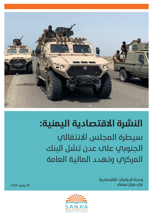 ازداد التشظي الاقتصادي بعد قرار المجلس الانتقالي تشكيل اللجنة الاقتصادية العليا في 11 مايو/أيار؛ إذ تبدو الأخيرة بمثابة كيان مضاد للجنة الاقتصادية الوطنية التي أنشأتها حكومة هادي في أغسطس/آب 2018. ولا يزال إطار عمل هذه اللجنة الاقتصادية العليا غير واضح إذ لم يُنشر أي تفاصيل بعد، ولكن بحسب المؤشرات المتوفرة، يبدو أن واجباتها الرئيسية تشمل إدارة السياسات النقدية والمالية، مما يعني منافسة البنك المركزي اليمني في تنفيذ المهام الأساسية الموكلة إليه حصرًا وفقًا للقانون. أعلنت اللجنة الاقتصادية العليا في أول بيان لها بتاريخ 13 يونيو/حزيران أنها لن تسمح للبنك المركزي في عدن بضخ أي أوراق نقدية جديدة في السوق بهدف كبح التدهور الأخير في سعر صرف الريال اليمني أمام الدولار. وفي اليوم نفسه، ضبطت القوات التابعة للمجلس الانتقالي سبع حاويات مليئة بالأوراق النقدية المطبوعة حديثًا أثناء نقلها من ميناء عدن إلى مبنى البنك المركزي، ونُقلت تلك الأموال إلى مجمع عسكري تابع للمجلس الانتقالي.