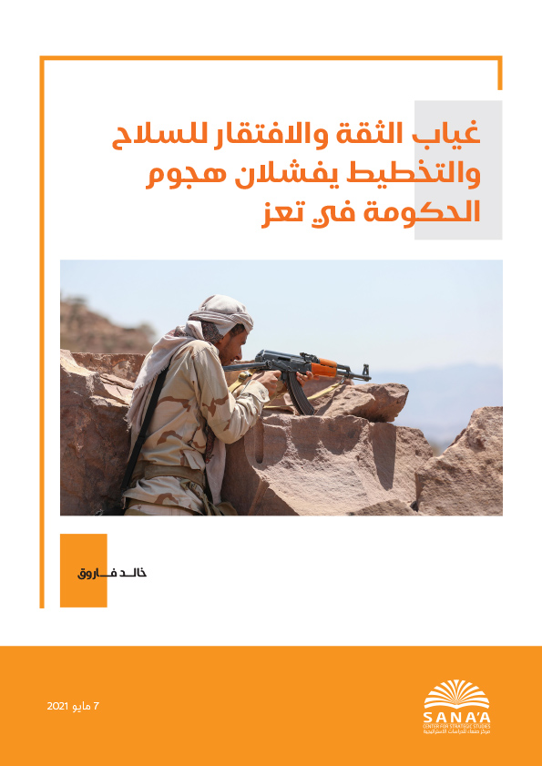 في فبراير/شباط، قدم وفد من محور تعز العسكري خطة للقوات السعودية في عدن، بحسب مسؤول في السلطة المحلية في تعز. اقترحت القوات في تعز -التي تدرك جيدًا خطورة القتال في مأرب- تحريك الجبهات العسكرية الجامدة في المحافظة، ورد السعوديون شخصيًّا بشكل إيجابي على هذا المقترح ولكنهم لم يؤمّنوا أسلحة وذخائر كافية للوحدات التابعة للإصلاح. وفقًا للمسؤول نفسه، كانت قيادة التحالف الذي تقوده السعودية قلقة من استهداف الإصلاح بهذه الأسلحة قوات المقاومة الوطنية التي يقودها طارق صالح، نجل شقيق الرئيس السابق علي عبدالله صالح، المتمركزة على طول ساحل البحر الأحمر في تعز والمدعومة من السعودية والإمارات. طلبت قيادة التحالف الذي تقوده السعودية في عدن من القادة المحليين في تعز شراء أسلحة بأنفسهم وقالت إنها ستدفع لهم ثمنها لاحقًا. ليس من المستغرب أن هذا الاقتراح قوبل بالرفض. يُعد افتقار القوات التي تقاتل إلى جانب الحكومة للسلاح إحدى أهم العوامل التي ساهمت بتوقف الهجوم في تعز.