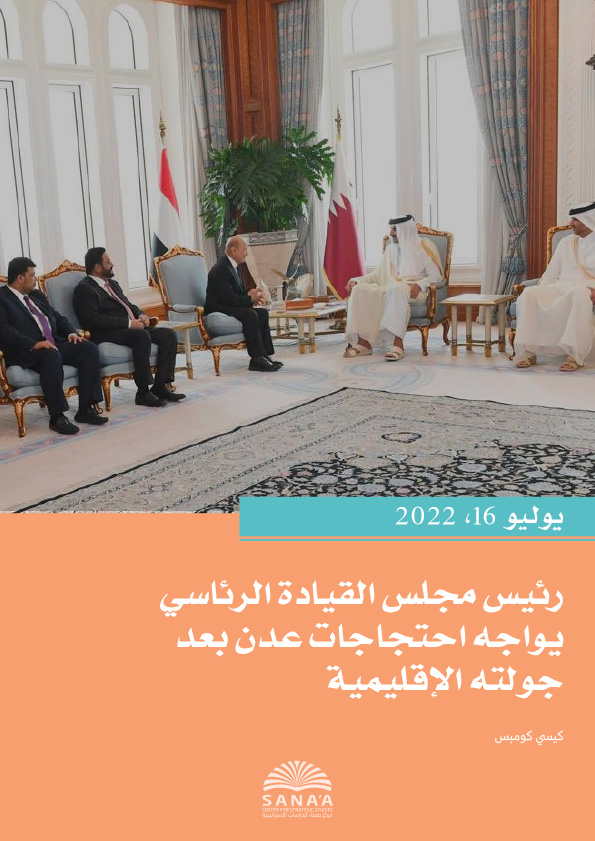 نجح مجلس القيادة الرئاسي اليمني في اقتناص تعهدات إقليمية بالدعم خلال جولة شملت دول الخليج ومصر في الفترة من 6 إلى 8 يونيو/ حزيران، إلا أن الاحتجاجات التي اندلعت في المناطق الجنوبية ألقت بظلالها على الاختراقات الدبلوماسية التي حققها رئيس المجلس رشاد العليمي. تسببت المظاهرات المنددة بارتفاع أسعار الوقود وتدهور الخدمات الأساسية في إغلاق مناطق من مدينة عدن، الواقعة تحت قبضة المجلس الانتقالي الجنوبي. ما اختلف هذه المرة، مقارنة بالاحتجاجات المماثلة في الماضي، هو افتقار هذه الاحتجاجات دعم المجلس الانتقالي الجنوبي، ويبدو أن هذا التحول في موقف المجلس -واهتمامه المتزايد بالحفاظ على الأمن في عدن -جاء على خلفية انضمام رئيسه عيدروس الزُبيدي كعضو رئيسي في مجلس القيادة الرئاسي وعمله إلى جانب العليمي. لكن ذلك لا يعني خلو تحالف المجلس الانتقالي الجنوبي مع مجلس القيادة الرئاسي من الشد والجذب، حيث اتهم الأول علنًا مسؤولين في البنك المركزي التابع للحكومة في عدن بالتآمر لنقل المؤسسة إلى صنعاء الخاضعة لسيطرة الحوثيين (انظر: البنك المركزي في عدن يدحض اتهامات المجلس الانتقالي الجنوبي له بالتخطيط لإعادة مقره إلى صنعاء)، وتزامن ذلك مع تنامي تزعزع الوضع الأمني في مدينة عدن إثر تنفيذ عدد من الاغتيالات أو محاولات الاغتيال (انظر، التطورات العسكرية والأمنية: مقتل صحفي و قائد سلفي في حادثتي اغتيال منفصلتين).