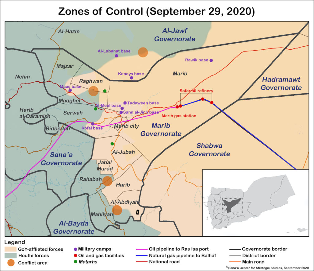 - ‘Maged al-Madhaji, “The Battle of Marib: Houthis Threaten Yemeni Government Stronghold,” Sana’a Center for Strategic Studies, April 10, 2020, https://sanaacenter.org/publications/analysis/9679
