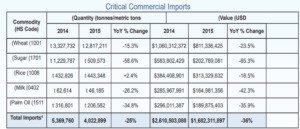 The escalation of the Yemen conflict in March 2015 led to rapid widespread economic collapse, disrupting established food supply chains (reflected in decreased imports, as shown in Figure 1 below) and leading to the near-total suspension of oil and gas exports, the country’s leading source of foreign currency inflows. Demand for fuel and basic commodity imports continued, however, rapidly depleting the CBY’s foreign currency reserves. These stood at US$4.6 billion in late 2014; during the first half of 2015 alone the central bank spent almost 40 percent of its reserves financing the import of basic commodities, including wheat grain, wheat flour, rice, sugar and oil derivatives.[7] Faced with rapidly declining reserves, in July 2015 the CBY began limiting its lines of credit for fuel imports, though by year’s end it had still expended nearly US$1.9 billion to cover fuel imports and basic commodities, at the official exchange rate of YR215/US$1, compared to around US$3.1 billion in 2014.[8]