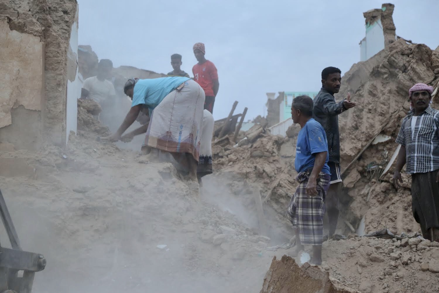 As of the beginning of May, deaths and injuries were reported along with the displacement of more than 20,000 people, according to the United Nations Office for the Coordination of Humanitarian Affairs, which reported large-scale damage in Aden, Abyan, Al-Dhalea, Lahj, Hadramawt, Marib and Taiz governorates. In Tarim district, Hadramawt governorate, four people were reported killed and 167 homes destroyed as of May 2. Photographer Mohammed Haian documented the scene there the following day for the Sana’a Center.
