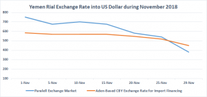 As the rial appreciated in November, there was a rush in the market to exchange stored foreign currency holdings into domestic currency to stave off losses in the value of savings. The same sources said many money exchange outlets acted as a cartel to buy foreign currency out of the market at a premium – meaning at a rate better than what the Aden-based CBY was offering importers. This was a purposeful overvaluation of the rial intended to absorb citizens foreign currency holdings. Simultaneously, these exchange outlets temporarily refused to sell, or severely limited their sale of foreign currency back into the market, anticipating that the rial would lose value again.