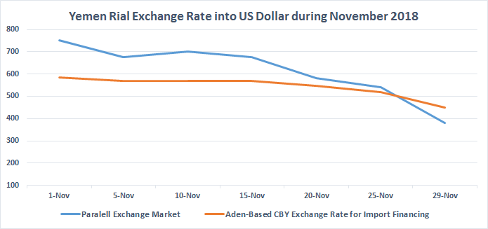In a circular directed to Yemeni banks, dated November 18, the Aden-based CBY informed commercial banks that it had reached an agreement with the Saudi Arabian Monetary Agency (SAMA) to facilitate the transfer of their foreign cash holdings. Since early 2015, Yemeni banks have been unable to move their cash holdings of foreign currencies to their accounts abroad. According to the agreement, the Aden-based CBY would be responsible for transferring the banks’ accumulated stocks of foreign currencies to Jeddah, Saudi Arabia. If successful, such a move could allow the CBY to utilize such stocks to fund imports and ensure Yemeni banks have the capacity to facilitate global trade and financial transactions. In attempt to encourage this transition the central bank pledged, as a service to the banking sector, to bear all costs of the mechanism until sufficient liquidity had returned to the formal financial system and the monetary cycle had been regained.