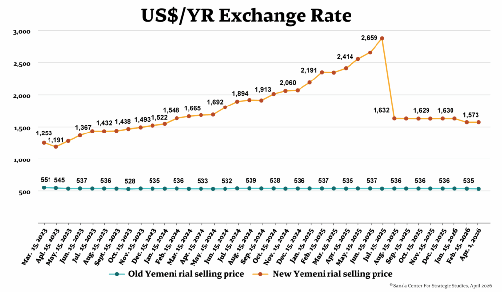 The price of old rials circulating in areas controlled by the Houthi group (Ansar Allah) remained relatively flat, trading between YR531-536 per US$1 over the first quarter of 2026.