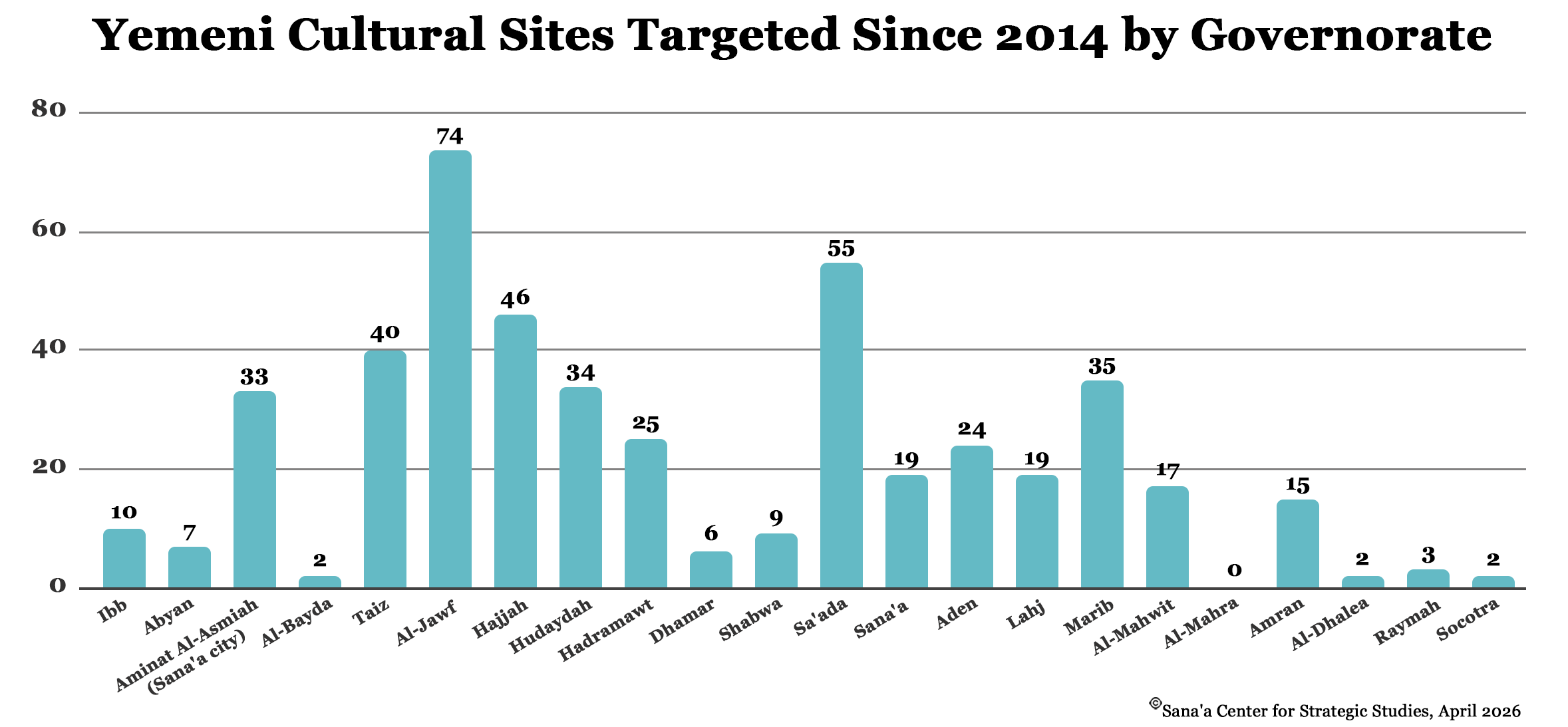 - The General Authority for Antiquities and Museums (GOAM) in Aden previously operated as a branch of its counterpart in Sana’a. Since the war, it has become a separate entity, with no coordination between the two.