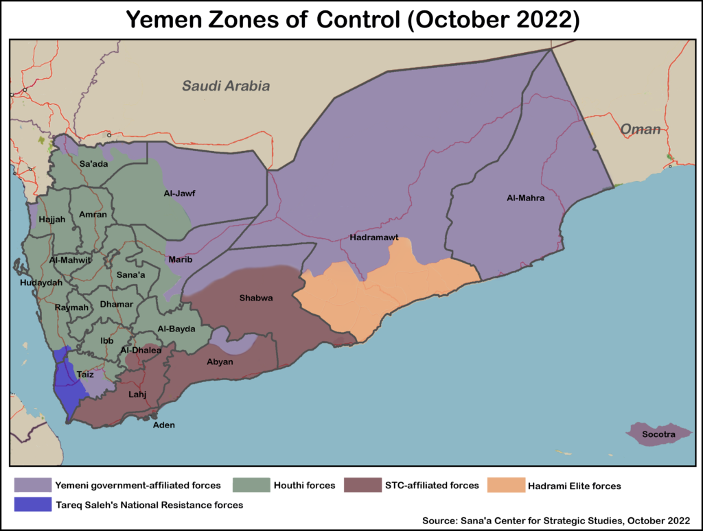 No casualties or damage were reported from the October 18-21 Houthi strikes on the Nushayma oil terminal and Al-Dabba port, but the prospect of further attacks in and outside Yemen paralyzed oil exports for more than three weeks, threatening government finances (see, The Economy & Finance, ‘Houthis’ Oil Port Attacks Threaten Government Finances’). The presidential palace in Aden is considered vulnerable to attack, even though the PLC remains largely absent; the UAE set up a radar system to detect drones around the palace complex before removing it a week later due to Saudi objections. Beyond Saudi energy and infrastructure, there are concerns among the coalition leadership about ensuring the smooth execution of the 2022 FIFA World Cup, taking place in Qatar in November and December and bringing global attention to the Gulf region.
